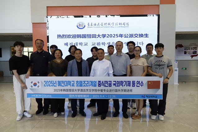 9月5日,烹饪学院举行2025年韩国彗田大学中国烹饪专业公派交换生欢迎仪式。韩国彗田大学烹饪学院教授李明哲、学校党委书记刁洪斌出席仪式。