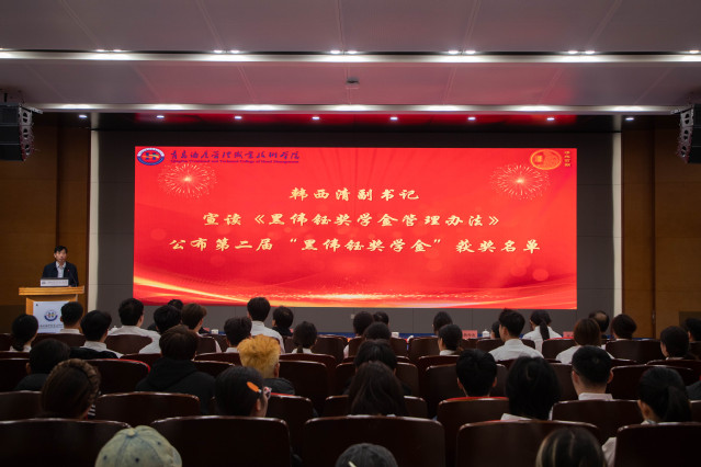 韩西清宣读《黑伟钰奖学金管理办法》和第二届“黑伟钰奖学金”获奖学生名单,并为“味来可期·一味一格”烹饪工匠礼仪展演队授旗。