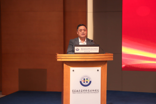 济南舜耕山庄酒店管理公司厨务总监张磊,学校烹饪学院负责人、师生代表参加仪式。