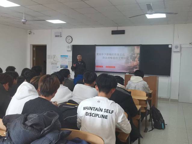 活动现场,烹饪工艺与营养专业吴迪老师,深入浅出地介绍中国阴阳历法的起源与饮食关联,二十四节气指导农事对于我们中原地区农耕文明的影响。讲座介绍黄河下游地区地域地貌特点,由此产生传统经典饮食文化的“分区图谱”、饮食背后的文明基因、食材、技法与风味密码、饮食文化的当代生命力。